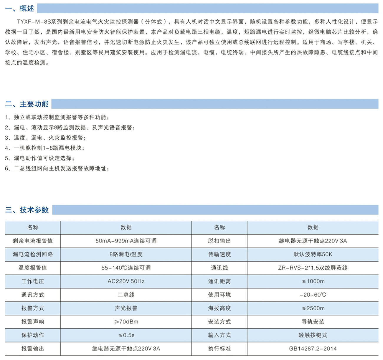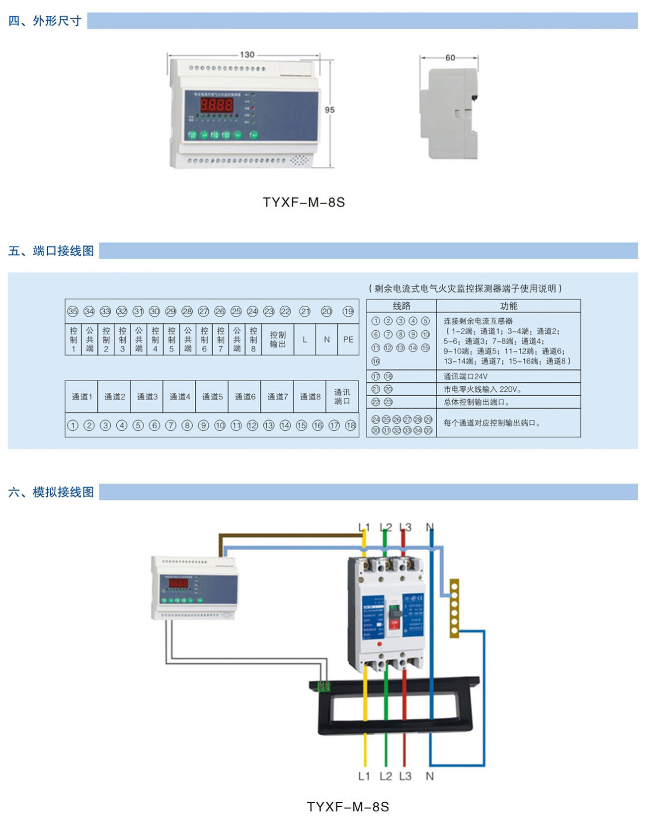 TYXF-M-8S剩余电流式电气火灾监控探测器